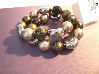 Auch das Schwarze hat ein schönes Design, besteht aber auch nur aus Modeschmuck Plastik. Das Perlenarmband ist sehr empfindlich, es hat schon auf der Reise hierhin wohl ein paar Kratzer abbekommen was aber das Design nicht stört durch die Marmorier-effekte.