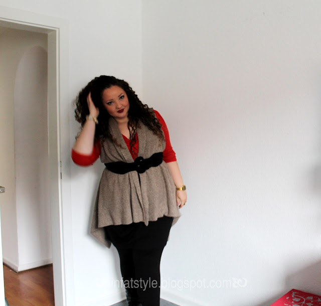 | Weste: H&M, Gürtel: Second Hand, Kleid: Dorothy Perkins, Legging H&M |