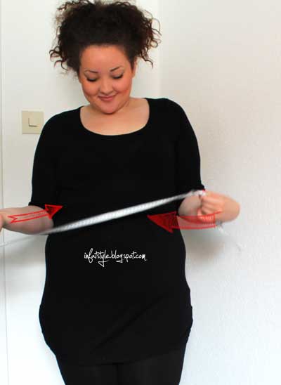 Wir messen Brustumfang, und Hüftumfang jeweils an der breitesten Stelle!