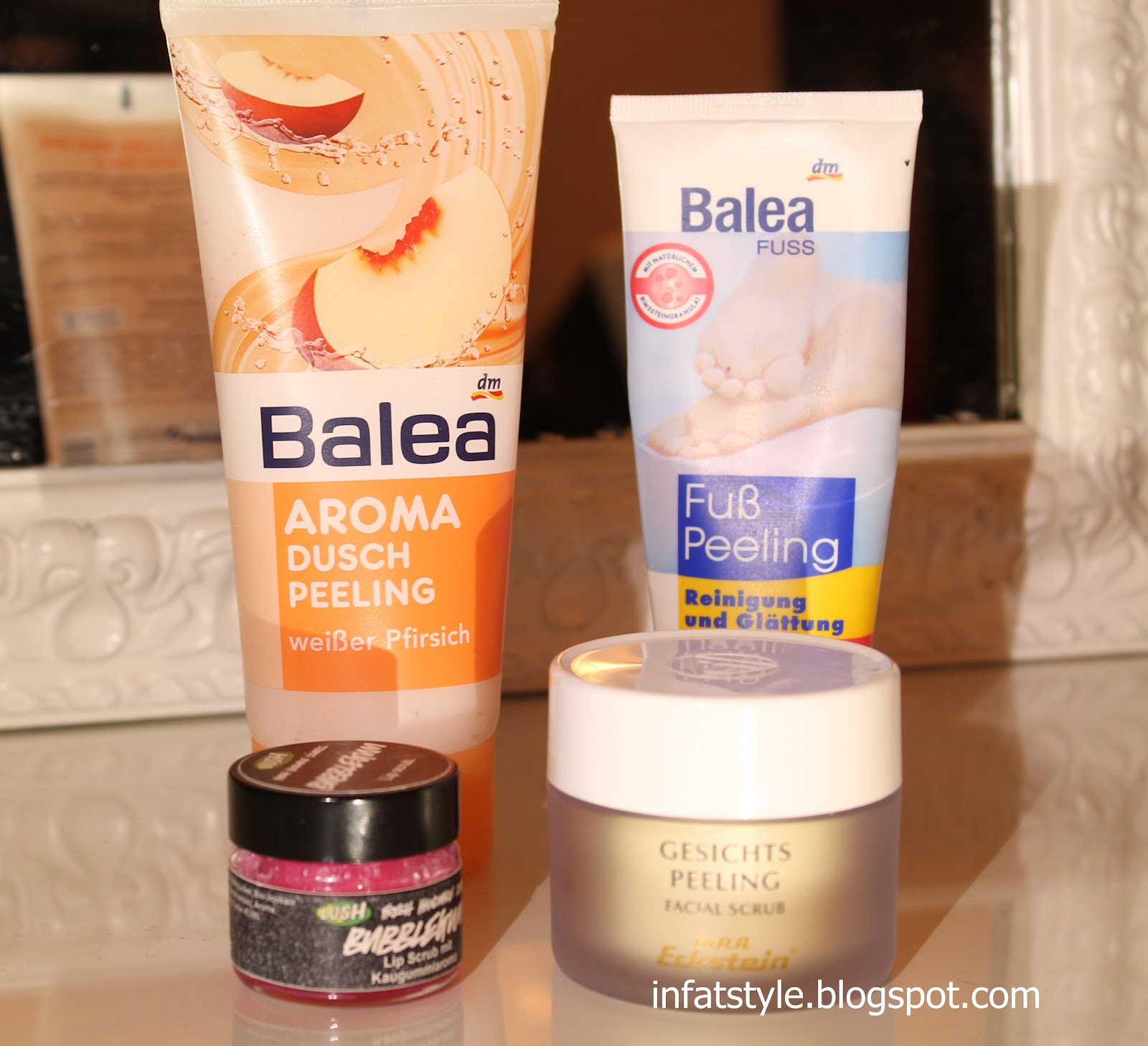 5.Ich habe für verschiedene Stellen meines Körpers, verschiedene Peelings. Obwohl ich weiß das es keinen Sinn hat, und ein Peeling für den GANZEN Körper reicht (außer das Gesicht). Somit besitze ich Körperpeeling, Fußpeeling, Handpeeling (gerade nicht zu finden)….Lippenpeeling………