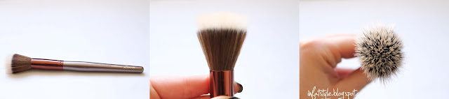 Der Puderpinsel ist sehr Weich und Fluffig, haarte etwas zu Anfang….nach dem zweiten Waschgang ließ das nach! Ich habe das Gefühl das er zu wenig Puder aufnimmt. Es kommt sogar was an im Gesicht, Nichts desto trotz habe ich das Gefühl das ich öfter pudern muss um mein liebstes Finish Ergebnis zu erreichen. Zudem finde ich in ein wenig zu klein, um schnell arbeiten zu können.
