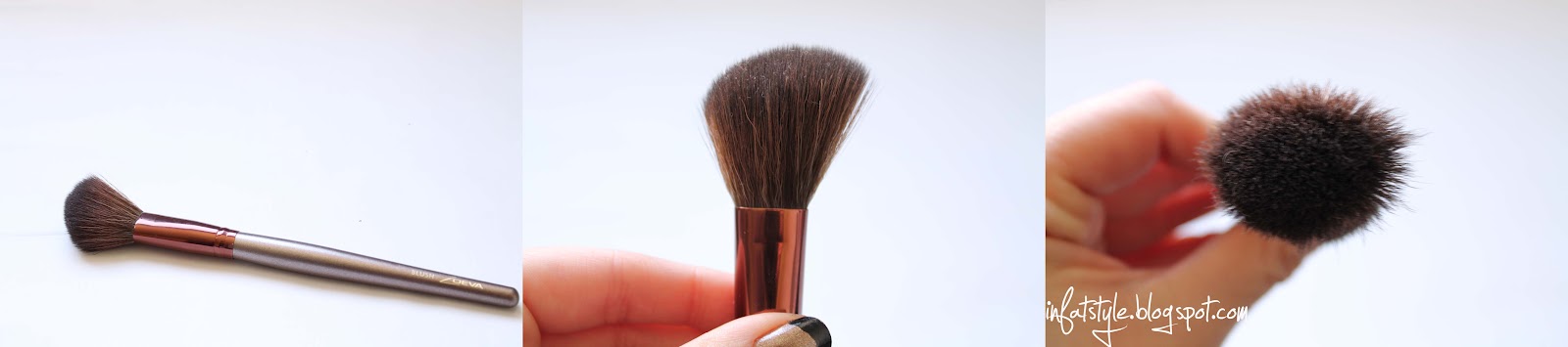 Beim Angeschrägten Rouge Pinsel verhält es sich wie bei dem Runden Rouge Pinsel, hierbei muss man nur persönlich entscheiden, mit welchem man lieber arbeitet. Um Rouge aufzutragen, bevorzuge ich den angeschrägten Pinsel da ich hier genau die Wangenknochen bearbeiten kann bzw. hervorzaubern! Er ist wesentlich kleiner als der große Blush Pinsel.