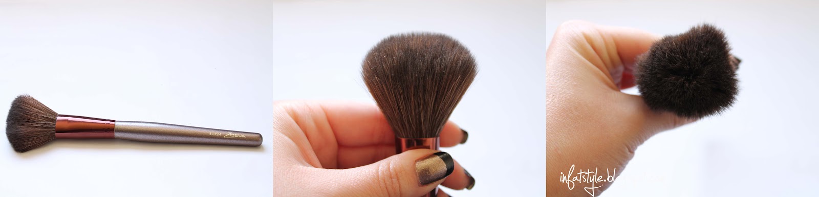 Auf dem Pinsel steht „Blush“, zum Auftrag von Rouge / Highlighter/ Bronzer.