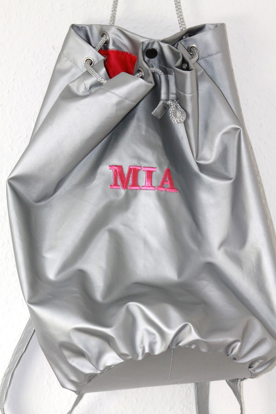 Und was – mitnehmen was man möchte in einem silber Ruckdsack mit dem Namen?!