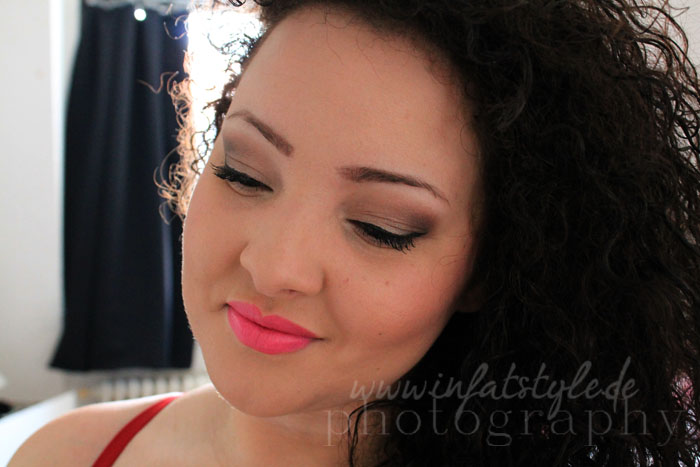 Mein Make-up ist bis auf den Lippenstift dezent gehalten. Um etwas tiefe rein zu bringen habe ich mit einem bronzefarbenen Lidschatten das äußere „V“ ausgearbeitet!