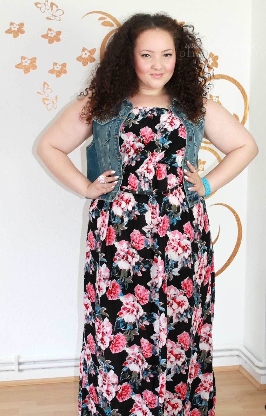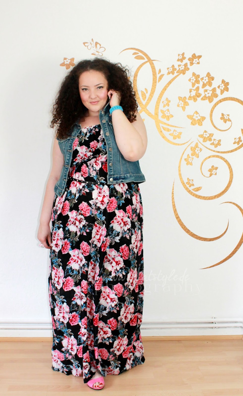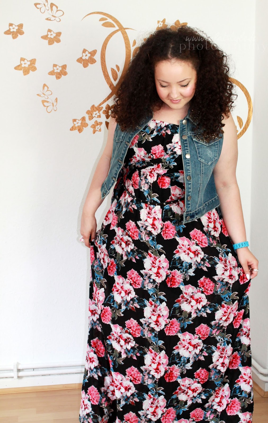 I'm a big dan of maxidresses with denim vest, this looks lovely on you, the colourful fabric matches your complexion really well too