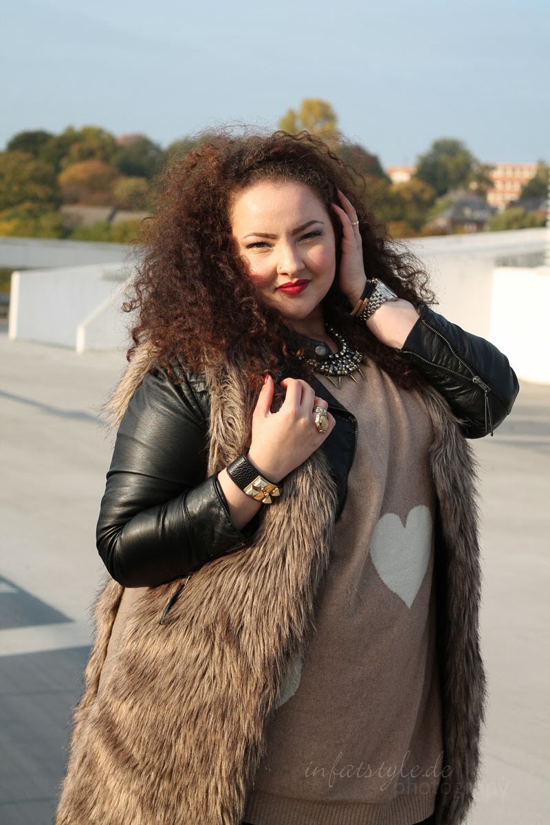 Dazu trage ich meine Lieblingskomobi von Lederjacke und Fellweste. Für mich einfach perfekt bei diesem Wetter. Es sieht wirklich immer stilsicher aus, und macht aus jedem Outfit mehr.