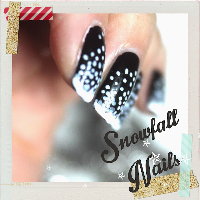 Da dieses „Kunstwerk“ (ähm) nicht viel Erklärung bedarf, werden die Nägel zuerst in einer einheitlichen Farbe lackiert. Ich entschied mich für schwarz da ich den Kontrast zu weiß sehr gern mag. Danach wird, wie ihr euch schon denken könnt, mit einem Nailartpinsel der weiße lack getupft. Zunächst nur im oberen viertel des Nagels, danach geht es schrittweise runter und am Ende haben wir den Effekt eines Schneefalls.
