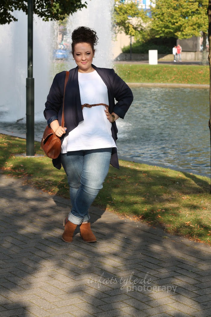 But I tried in my way. I took my favorite jeans from Forever 21, and my white shirt Basic out of Cecil and gave this look a few details. The blue blazer to the brown-beige shoes matching belt gives the outfit the Mia look.