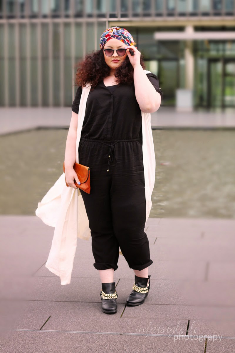 Unter meinen Jumpsuits trage ich gewöhnlich Miederwäsche um Beulen vorzubeugen. Mich stören da die Bauchrollen und ich vermeide dieses einfach mit Miederhosen. Sie drücken die Rollen ein und der Jumpsuit sitzt vorne dann nicht mehr so spack. Zur Zeit trage ich die Miss Perfect Miederhosen aus dem Onlineshop www.peterhahn.de . Die Miederhosen findet ihr in der Kategorie Große Größen, bei der Wäsche.